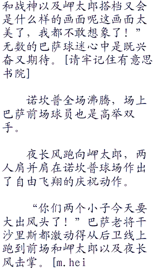 “只要裁判还没有吹响哨声,你们就是一个球员,就要在球场上履行自己的职责,用职业球员的标准来要求自己!”夜长风来了一段激.情的演说,“我说过了,不仅要赢,还要赢得漂亮!”