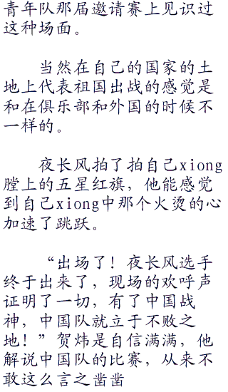 这道闪电般的身影除了夜长风,不会有第二个人了,在足球场上,能有夜长风这样弹速的球员在顶级职业赛场上也不多见。
