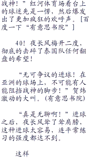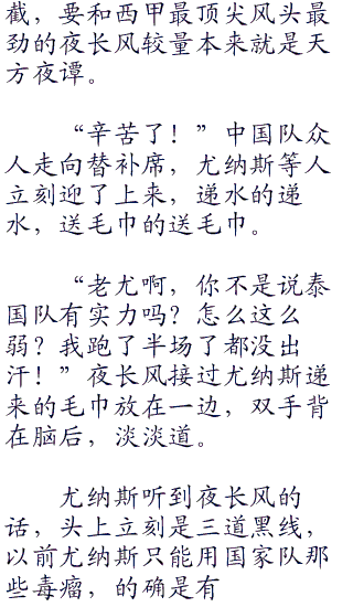 上半场比赛很精彩,是球技,战术,配合的较量,也是全国中学生最高的水平,而下半场比赛,在夜长风看来则完完全全就是精神和意志力以及体能储备的较量了。
