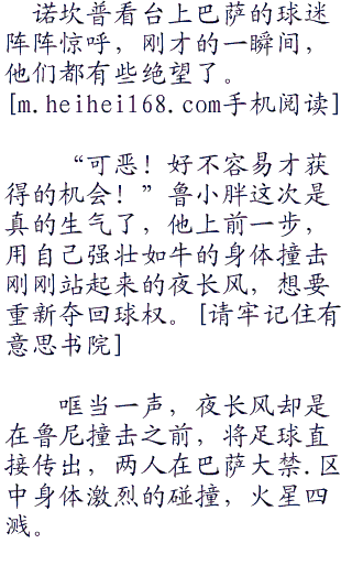此时进球之后,舍我其谁的夜长风双臂高举咆哮着冲向观众席,这计一球入魂发泄了夜长风xiong中的愤怒。