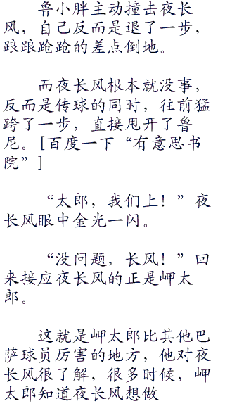 “哼!臭小子你没办法了吧!如果你回来防守的话,南葛的进攻就没威力了。如果你一直呆在前场,南葛的防线就会被我们碾碎!”前田麻里子看着屹立在中场的夜长风,喃喃自语。。