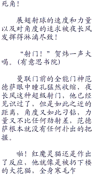 “森崎!”石崎回头一看,森崎大帝作出一次精彩的扑救,他将身体横在空中,全然无惧意的扑向了左门柱。