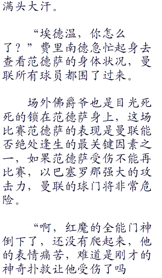 “啊,又一次战平了,这场比赛真是我解说这么多年从未遇到过的比赛啊,太激烈了!”德川正义看着面前显示器上的特写镜头,“南葛的门将森崎有三撞在了门柱上,希望他没事啊!”