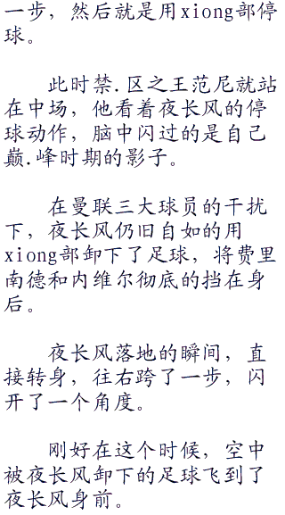 噌!夜长风已经风驰电掣般的杀入了东邦学园的大禁.区中,东邦学园的最后三名防守球员围了上来。