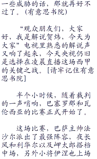 “为什么会这样!施奈德,你从小就是从汉堡的后备军里成长起来的,是汉堡才让你有了如此的实力,你为什么突然要去别的球队。这就是对汉堡的背叛啊!”汉堡青年军的球员非常不满。