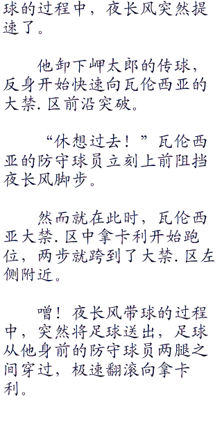 这样的位置,夜长风既可以很快的参与到进攻,又可以中场组织,当然这位置也不是固定的,夜长风在场上的活动范围还是很大的。
