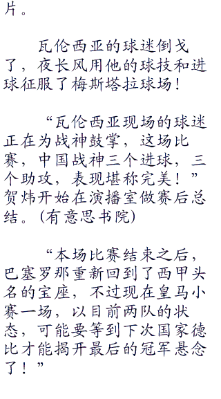 噌!紧接着,夜长风带球冲向汉堡二军半场的众人。