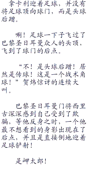 “虎射!”日向小次郎在大禁.区内的点球点附近,迎着翻滚的足球就是一计怒射,又是虎射。