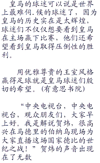 ;;;这场比赛中国青年队没有随队的记者,因为本来就不受重视,如果让国内的媒体知道这个比分的话,估计要认为拜仁青年军踢假球了。