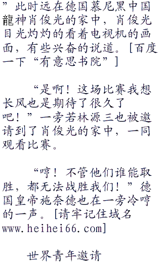;;;;“我这次的目标是带领德国队在邀请赛上夺冠,现在看来我最大的对手不是欧洲的球队,反而是这只神秘的中国队!”施奈德眼中金光闪动。