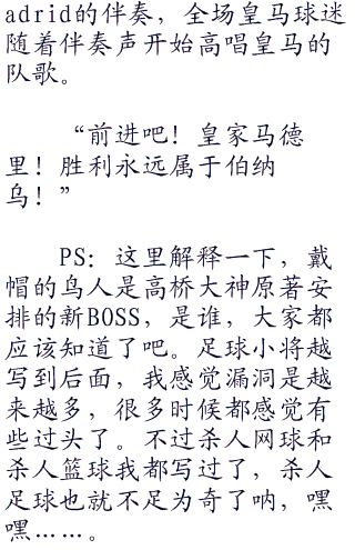 ;;;场上,接下来的比赛拜仁青年军疯狂的发动了反击,但是每次都被肖俊光挡下,无功而返。
