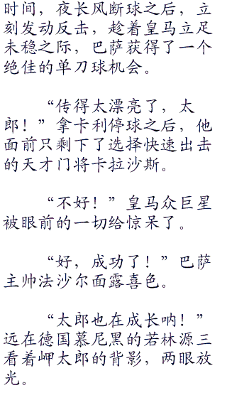 ;;;现在日本青年队的阵容完备,拥有了大空翼和岬太郎,另外还有若林源三,这只日本青年队和之前输给汉堡二军的日本队可以说是两只完全不同的球队了。