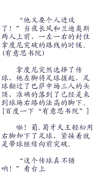 ;;;夜长风一拿球,立刻吸引了意大利队防守球员的注意力,意大利队的防线号称世界第一,有铜墙铁壁之称。