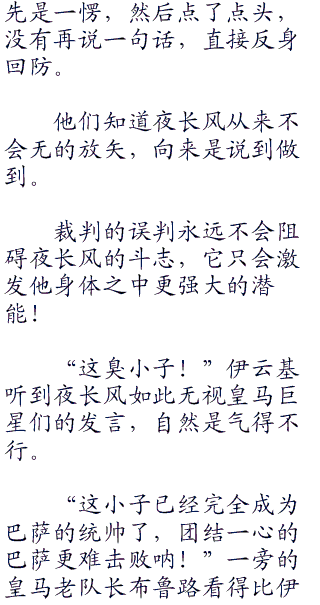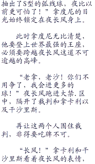“我喜欢这个中国零号!”生性豪放的欧洲人,不少对球技鬼神莫测的夜长风有了好感。