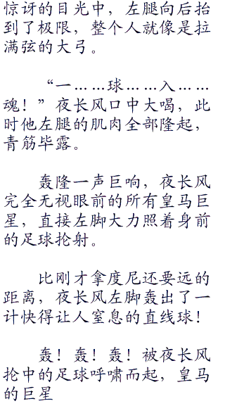 “闪光射门!”此时施奈德已经是箭在弦上,不得不发了,他也不管夜长风是不是勾住了足球,施奈德抡圆了右腿,一脚轰在面前的足球上。