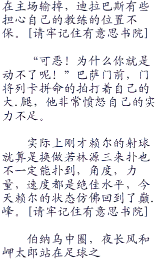 ;;;“这家伙是个古典型的中场球员!”夜长风眉头微皱,本来迪亚斯和帕斯卡尔的黄金组合就够麻烦了,现在阿根廷青年队又上来这样一个球员,中国青年队的防守就更难受了..;....