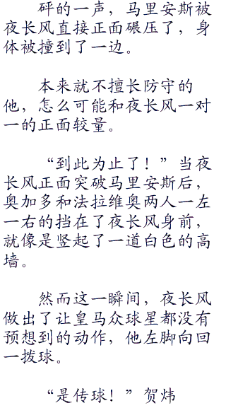 ;;;“什么!”孙继海大惊失色,他的滑铲居然被像是脑后长眼的迪亚斯躲开了。