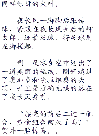 ;;;而当迪亚斯将足球回传之后,他立刻从肖俊光的身边掠过,直接杀入到中国青年队的大禁.区中。