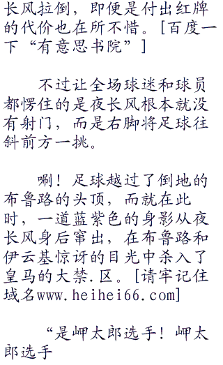;;;噌!夜长风大步趟球向前,既然阿根廷青年队采用乌龟式防守的话,夜长风也不介意,他也经历过这种局面了。