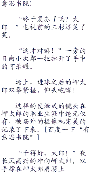 ;;;“加油啊,长风!我希望能和你在决赛中相遇!”一旁的岬太郎下意识的握紧了拳头,比自己踢球还要紧张的样子。