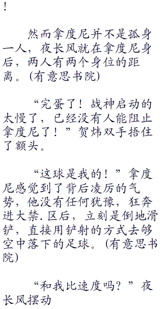 ;;;噌!此时夜长风在中场高高跃起,力压阿根廷青年队两名中场球员,将足球顶给了旁边的马明宇。
