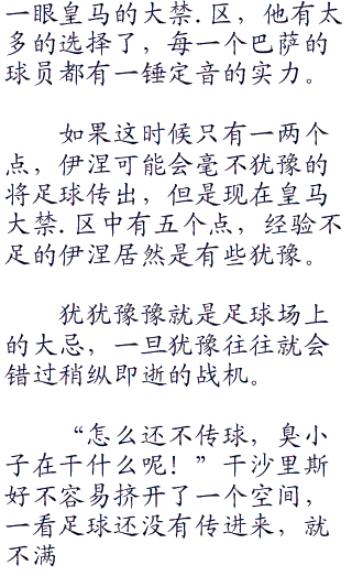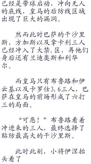 ;;;;“还剩下两分钟,不也许只有一分半了!”就当所有阿根廷青年队球员似乎都已经放弃的时候,迪亚斯跑到了球门之中,抱起球门中的足球就往中场跑。
