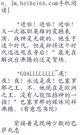 以贺炜十多年解说足球的专业意识,贺炜感觉到中国可能会真正的拥有一个超级球星,所以贺炜对今天的比赛非常的重视,专程来到法国就是为了亲眼见证中国战神的冉冉升起!