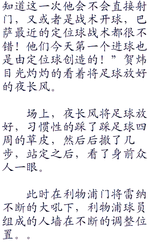 ;;;此时夜长风将足球放在了裁判指定的位置,然后习惯性的踩了踩四周的草皮。
