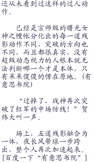 而这给了夜长风一个绝佳的机会,他从德国队所有后卫身边一掠而过,所有人都没有反应过来。