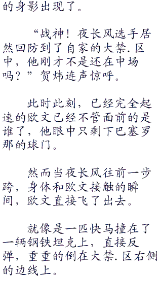 ;;;“不能让他再射门!”德国队教练在场外都要疯掉了,他恨不得自己上场挡住夜长风的射门。