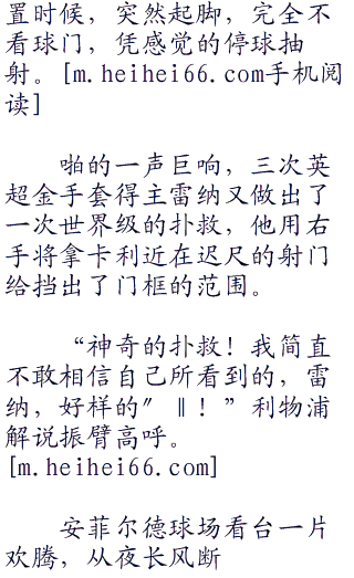 ;;;“传得好!”施奈德大喝一声,也不停球了,因为他知道夜长风一定就在他身后,施奈德猛然摆动右腿,准备直接凌空抽射,如此之近的距离,王大雷就算是扑到施奈德的闪光射门也够呛。