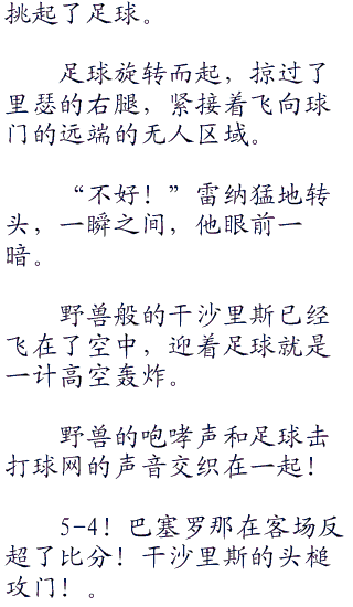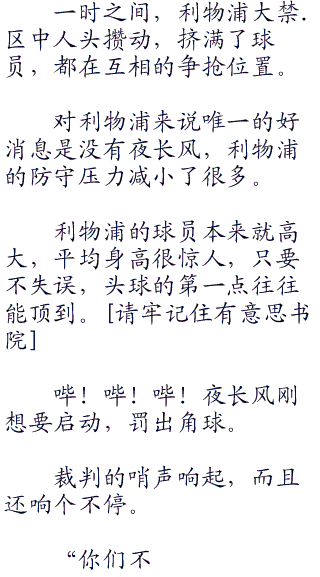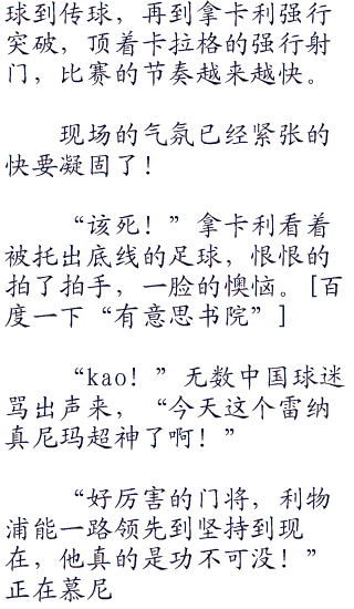 ;;;现在夜长风则是在足球场上也开始展现他的指挥才能,中国青年队在他的指挥下没有在德国强大的攻势面前一下子慌乱。