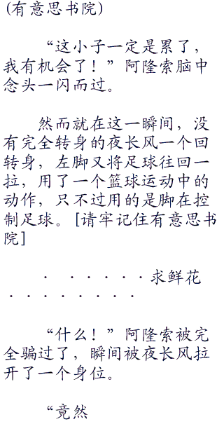 ;;;夜长风则是继续极速带球向前,而且是速度越来越快,就像是开足马力的赛车,根本停不下来的节奏。