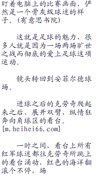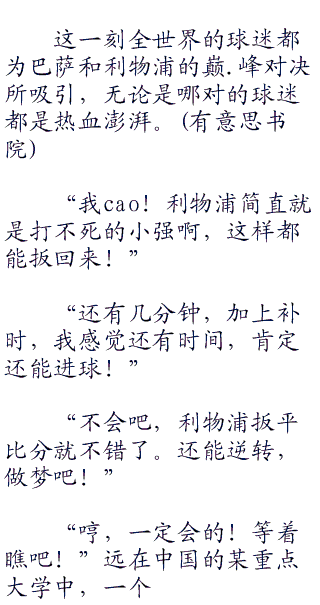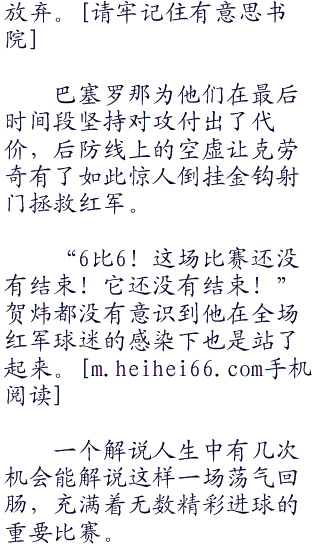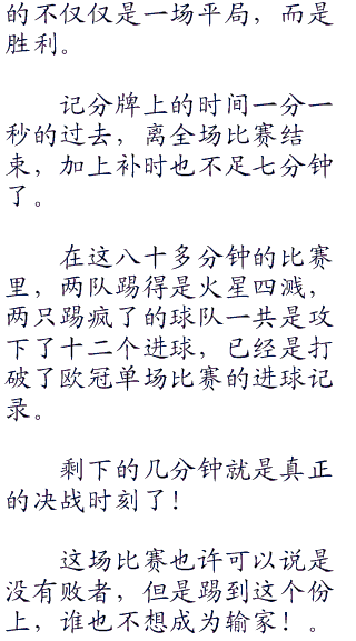 ;;;“我们胜利了,这不仅仅是中国青年队的胜利,也是中国几代足球运动人努力的结果,让我们用掌声和欢呼恭喜这只中国队,祝愿他们能在决赛中夺冠,捧得金杯!”此时媒体区的贺炜竟然也是泪流满面。
