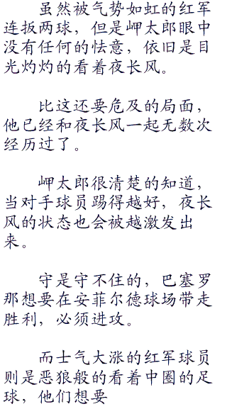 ;;;唰!过掉防守人之后,岬太郎想都不想,直接是一个直塞球,足球擦着草皮极速的飞进了乌拉圭青年队的大禁.区中。