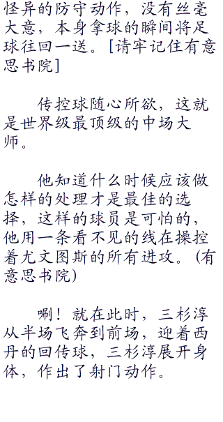 ;;;“居然能躲过战神的潜水艇式防守真厉害!”看台上不少中国球迷都发出了惊叹声,显然足球王子的球技让人不得不赞叹。