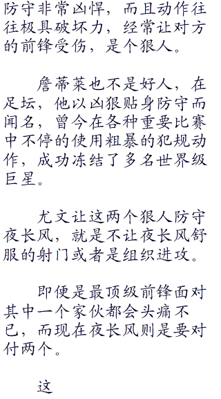 ;;;王忠明没有强行射门,他先是回头看了一眼身后夜长风的位置,此时夜长风距离大禁.区还有一段距离,不过速度很快,比日本青年队回防所有人都要快。