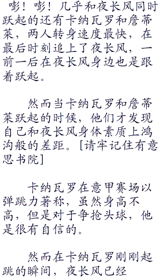 而一旦夜长风参与防守,他就必须回到后场,而当中国青年队反击时,夜长风速度再快,也不可能一瞬间就从后场冲到前场。