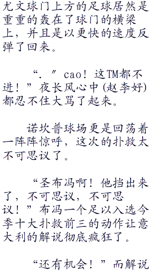 “甩头攻门,这一球会进吗?”媒体区的贺炜带着无限的期待看着飞速钻向球门远角的足球。