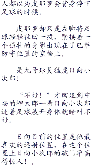 撞开岬太郎和大空翼后,夜长风直接左脚将脚下足球一拨,足球被夜长风分到了边路姚夏的脚下。