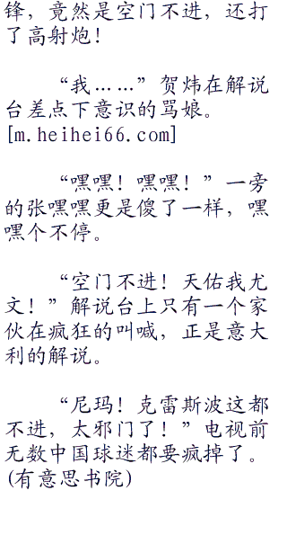 “来了,中国队又一次机会来了,前锋飞翔高高跃起,又是头球攻门吗?”刚才还颇为失望的贺炜,一下子又被场上的局面吸引。