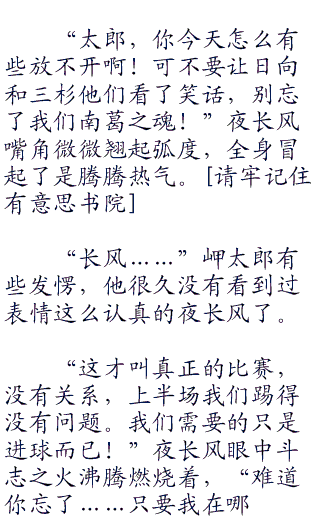 ;;;“糟糕!”岬太郎回头一看,夜长风已经带球冲向了日本青年队的半场,速度极快。