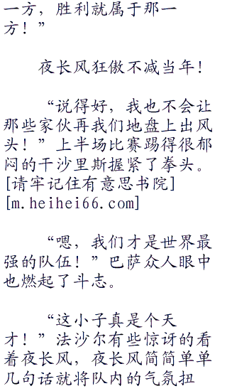 ;;;日本队的防守力量显然没有上半场的强度那么高了,这让中国队的进攻也打出了,夜长风不再靠自己的个人力量,而是开始组织中国队的中场进攻。