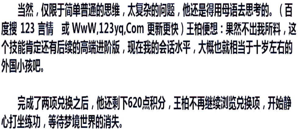 王柏浏览了一圈,发现对目前的自己来说,比较实用的技能还是有一个的,那就是价值1000点积分的五种语言!