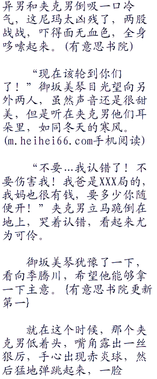 “我问你们在做什么!打人很爽,欺负弱小感觉很棒吧?那么现在风水轮流转,身为弱小的你们”御坂美琴缓缓地抬起头,对着三人怒目而视,娇喝道,意念一动。有.意思书院首发