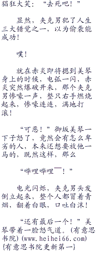 “啪!”御坂打了一个响指,解除控制,那个光头仔才无力地倒了下去,这一回之后,整容的钱都可以省了。
