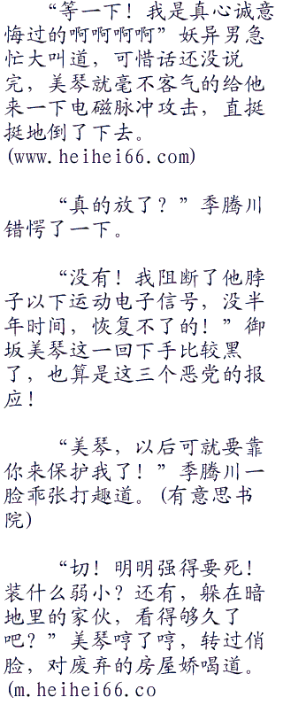 “常盘台校服!”妖异男看到御坂的衣服,心里顿时咯噔一下。