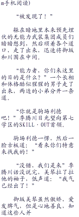 常盘台虽然是女子中学,学生也只有两百人,但是没有一个低于LEVEL3级别的,其中LEVEL4大能力者就有名,LEVEL5有两个,更有一个LEVEL6,招惹不起啊!