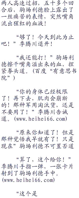 “教训吗?能力者!我想知道你打倒我们这些无能力者,是抱着何种想法?享受?还是觉得在踩踏蝼蚁?”驹场利德神色严肃起来,低沉的问道。<a href="hei." target="_blank">hei.</a>