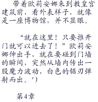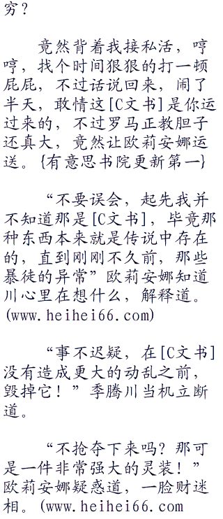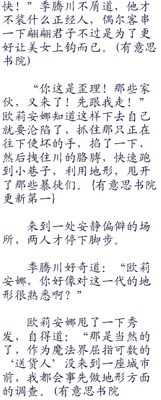 “好啦!怕了你了!一见面就对大姐姐动手动脚!真不正经!”欧莉安娜娇嗔道,抛给川一个卫生眼,让他适可而止。